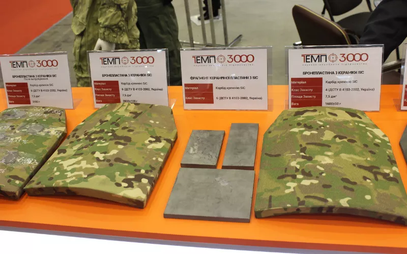 تُستغل قدرتها على صد رصاصة بنصف وزن الفولاذ في التطبيقات العسكرية، وهي معتمدة لمقاومة الرصاص عيار 7.62 مم والعبوات الناسفة. تُنتج بأحجام قياسية (من 100x100 مم إلى 600x1200 مم، بسمك يتراوح بين 1 و30 مم)، أو بأشكال مخصصة مثل فوهات الصواريخ، بثلاث درجات متخصصة: الترسيب الكيميائي للبخار فائق النقاء (99.9995%) المناسب للتطبيقات الحرارية، والتلبيد عالي القوة (450 ميجا باسكال) للأحمال الميكانيكية، والترابط النتريد المقاوم للتآكل في البيئات الكيميائية القاسية.