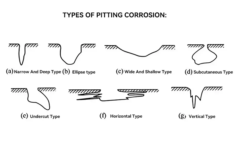 Pitting is a very hidden form of corrosion that often forms local holes in metal. This type of corrosion is highly destructive and dangerous. It can penetrate deeply but cause minimal damage to the surface. Once corrosion begins, it will continue to self-catalyze and is difficult to detect before major damage occurs.